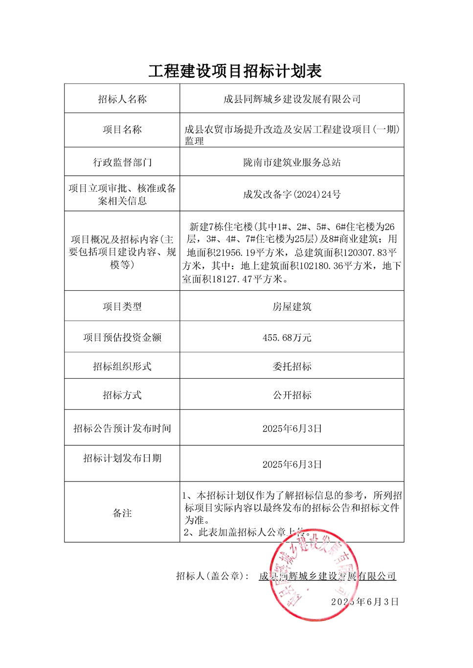 成縣農(nóng)貿(mào)市場提升改造及安居工程建設項目(一期)監(jiān)理