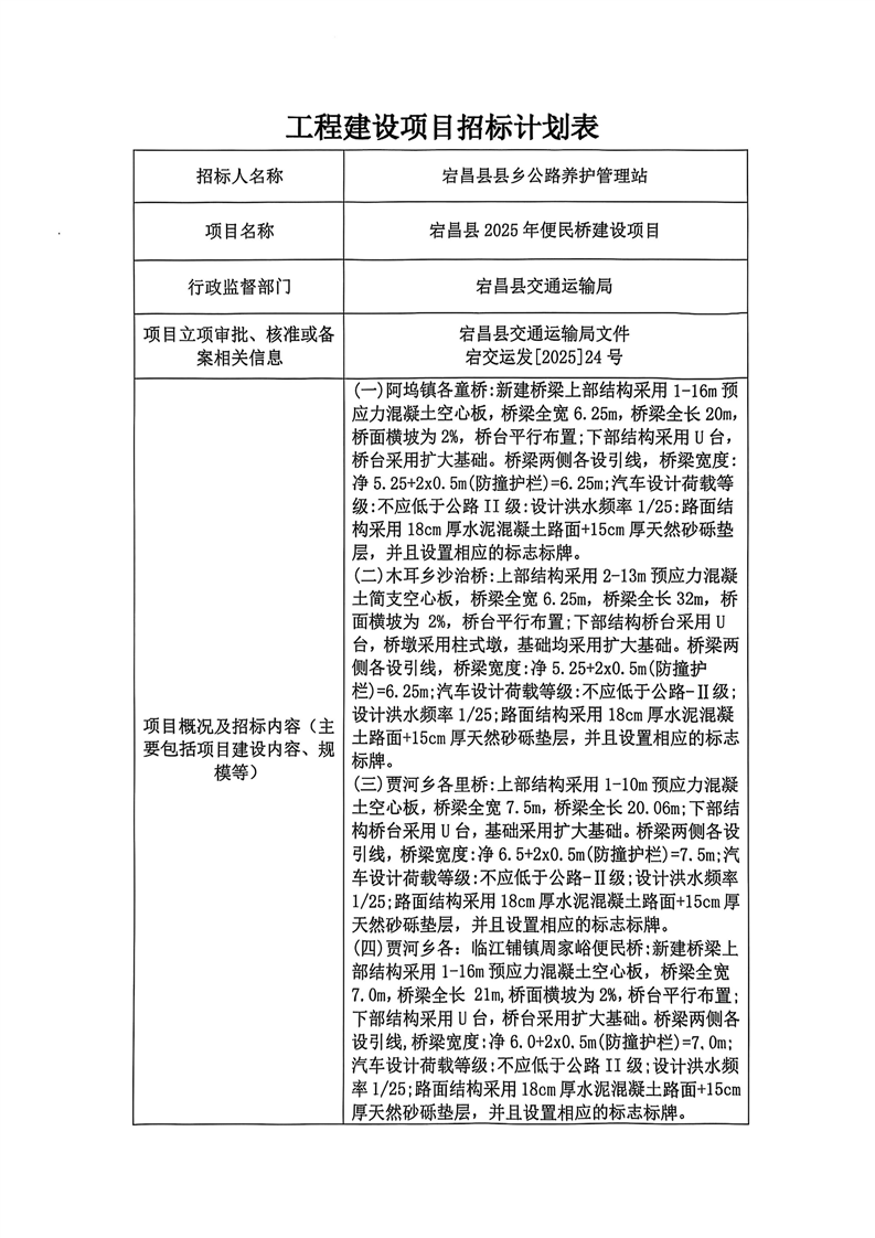 宕昌縣2025年便民橋建設(shè)項(xiàng)目