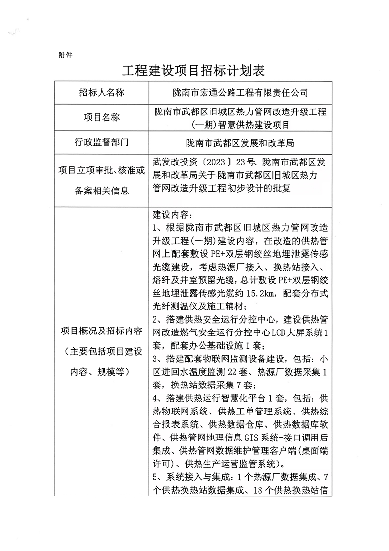 隴南市武都區(qū)舊城區(qū)熱力管網(wǎng)改造升級工程(一期)智慧供熱建設(shè)項(xiàng)目