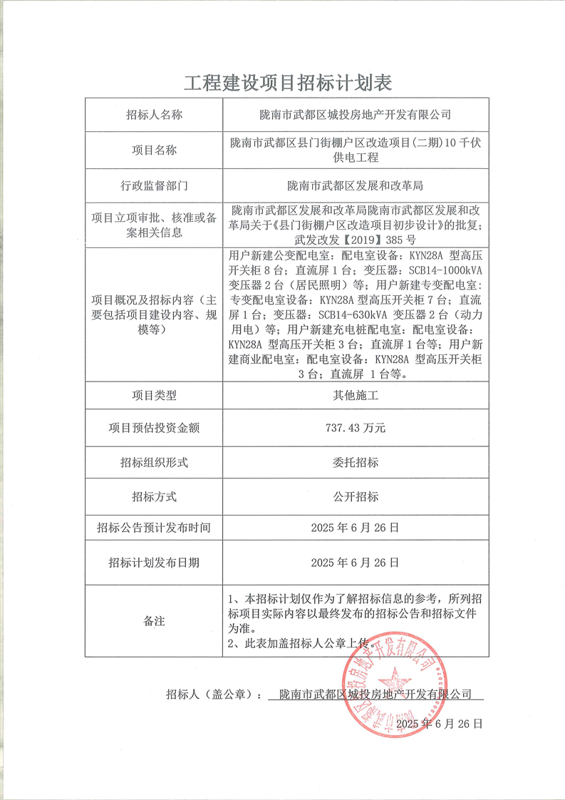 隴南市武都區(qū)縣門(mén)街棚戶(hù)區(qū)改造項(xiàng)目(二期)10千伏供電工程