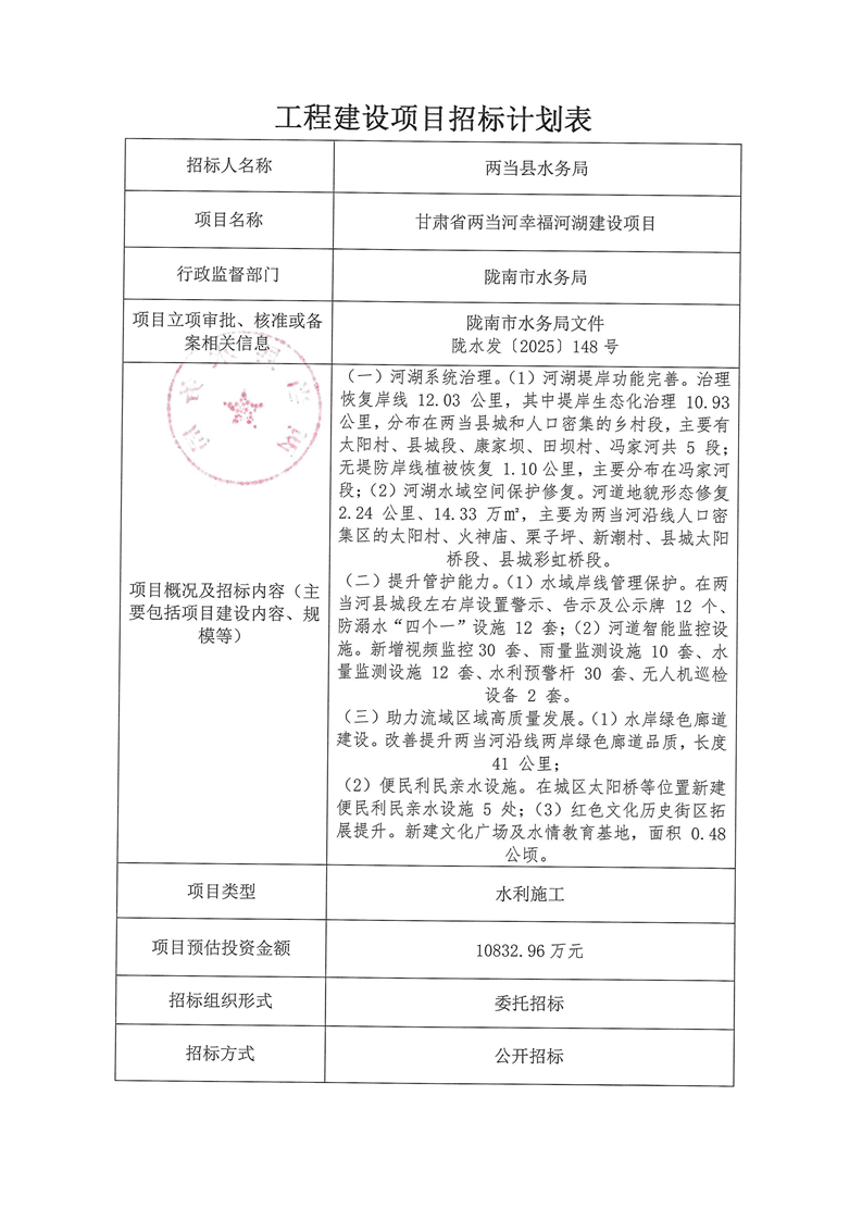 甘肅省兩當(dāng)河幸福河湖建設(shè)項(xiàng)目