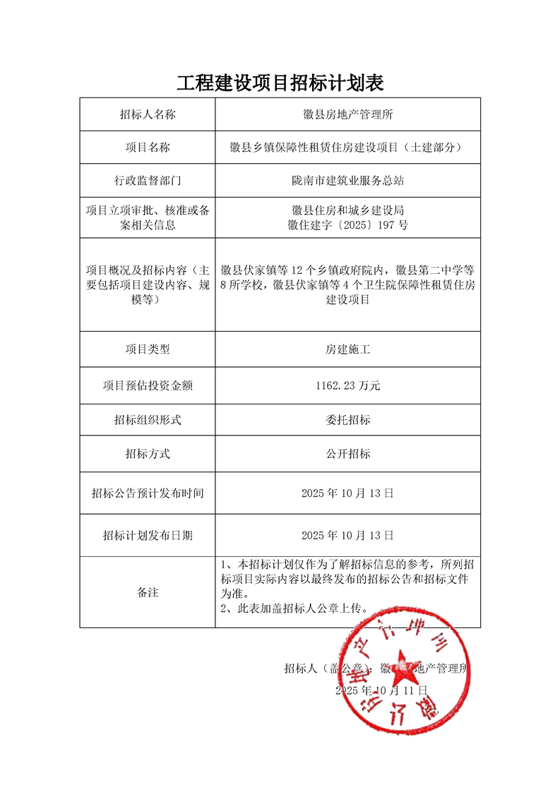 徽縣鄉(xiāng)鎮(zhèn)保障性租賃住房建設(shè)項目(土建部分)