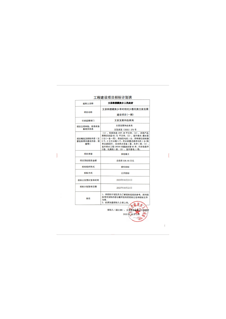 文縣鐵樓藏族鄉(xiāng)草河壩村少數民族文旅發(fā)展建設項目(一期)