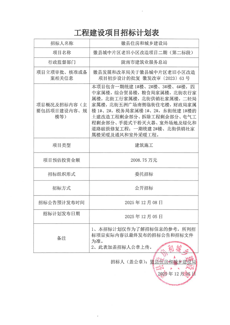 工程建設(shè)項目招標計劃表徽縣城中片區(qū)老舊小區(qū)改造項目二期(第二標段).pdf
