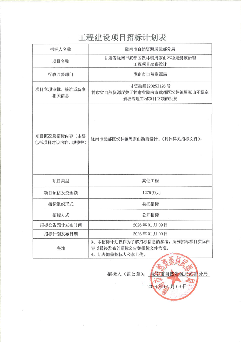 隴南市武都區(qū)漢林鎮(zhèn)周家山不穩(wěn)定斜坡治理工程勘察設(shè)計