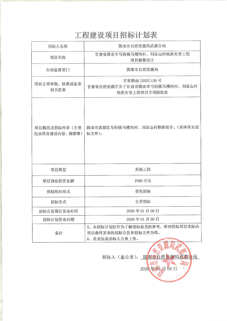 隴南市武都區(qū)馬街鎮(zhèn)馬槽溝村、劉家山村地質(zhì)災害治理工程勘察設計