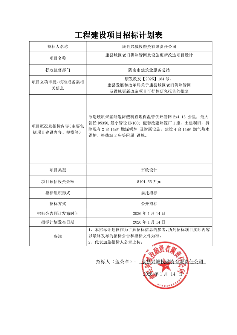 康縣城區(qū)老舊供熱管網(wǎng)及設施更新改造項目設計