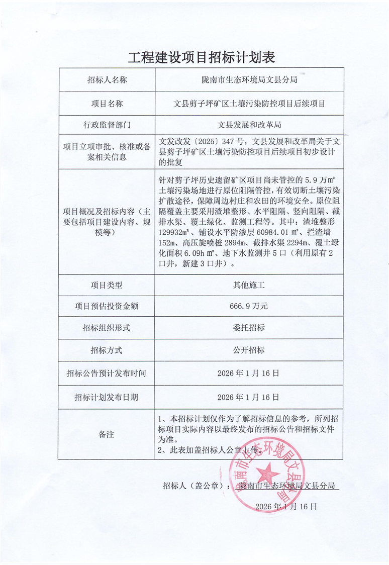 文縣剪子坪礦區(qū)土壤污染防控項目后續(xù)項目