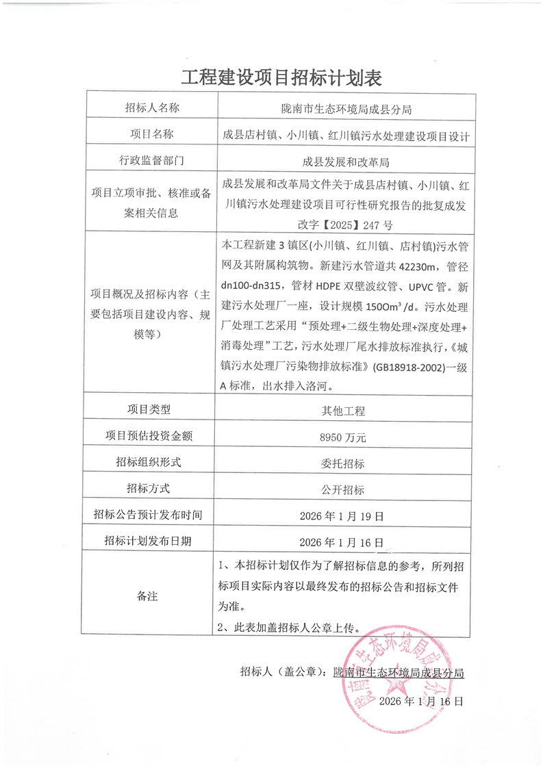 成縣店村鎮(zhèn)、小川鎮(zhèn)、紅川鎮(zhèn)污水處理建設(shè)項(xiàng)目設(shè)計(jì)