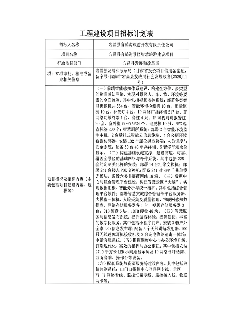 宕昌縣官鵝溝景區(qū)智慧旅游建設項目