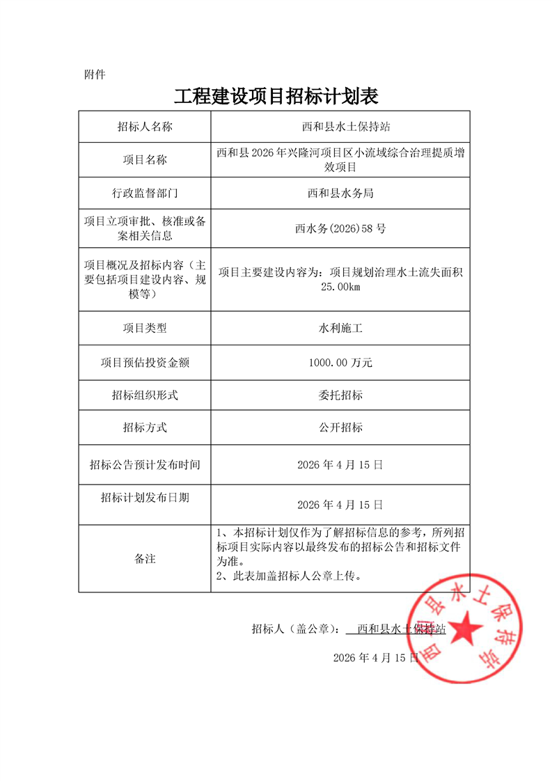 西和縣2026年興隆河項目區(qū)小流域綜合治理提質(zhì)增效項目