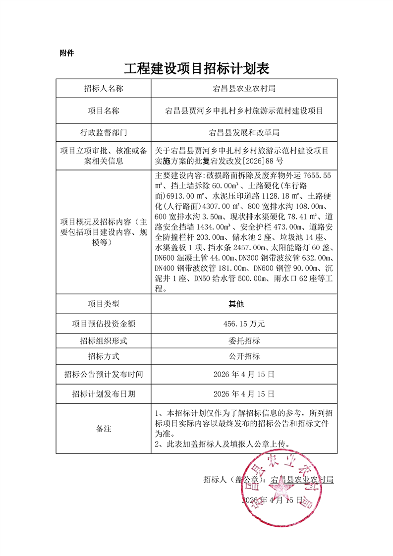 宕昌縣賈河鄉(xiāng)申扎村鄉(xiāng)村旅游示范村建設項目