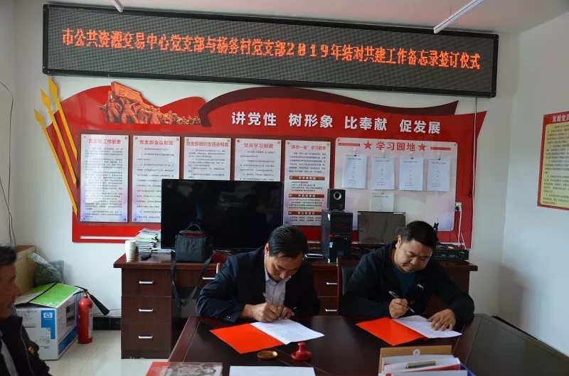 根據(jù)《中共隴南市委組織部關(guān)于扎實做好幫扶單位黨組織與貧困村黨組織結(jié)對攻堅工作的通知》要求,市公共資源交易中心黨支部與武都區(qū)黃坪鎮(zhèn)楊務村黨支部在4月啟動開展結(jié)對共建活動基礎(chǔ)上,組織召開雙方黨支部結(jié)對共建工作聯(lián)席會,進一步探討和完善結(jié)對共建方案,簽訂了《隴南市公共資源交易中心黨支部與武都區(qū)黃坪鎮(zhèn)楊務村黨支部2019年結(jié)對共建工作備忘錄》。
