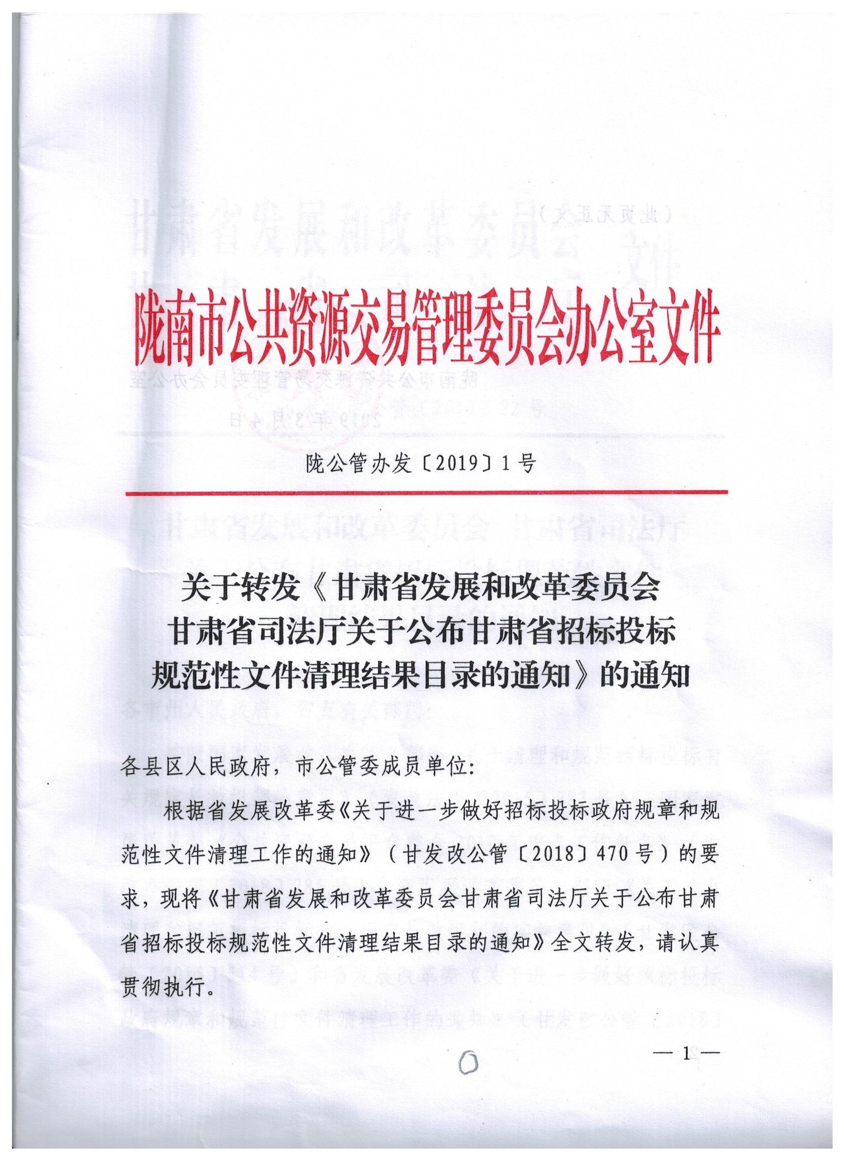 關于轉發(fā)《甘肅省發(fā)展和改革委員會 甘肅省司法廳關于公布甘肅省招標投標規(guī)范性文件清理結果目錄的通知》的通知